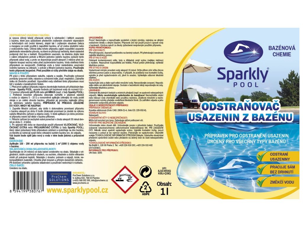 je vysoce účinný tekutý přípravek určený k odstranění i letitých usazenin z bazénu, které jsou způsobené především zvýšeným obsahem vápenatých a hořečnatých solí (vodní kámen), stejně tak i zvýšeným obsahem železa a manganu ve vodě použité k napuštění bazénu, ať už vodou studniční nebo z vodovodního řadu. Účinná látka tohoto přípravku zajistí rozpuštění usazenin jakéhokoliv minerálního původu, na které se přichycují nečistoty, které následně podporují růst řas a bakterií. Rozpuštěním usazenin, ke kterému dojde také v celém cirkulačním potrubí a filtrační jednotce vašeho bazénu způsobí tento přípravek zákal vody, a proto se doporučuje použít alespoň 2 měsíce před zahájením koupací sezóny nebo před zazimováním bazénu. Voda ošetřená tímto přípravkem se nevypouští. Změkčuje vodu a brání následnému usazování vodního kamene na stěnách, v potrubí a filtrační jednotce bazénu.