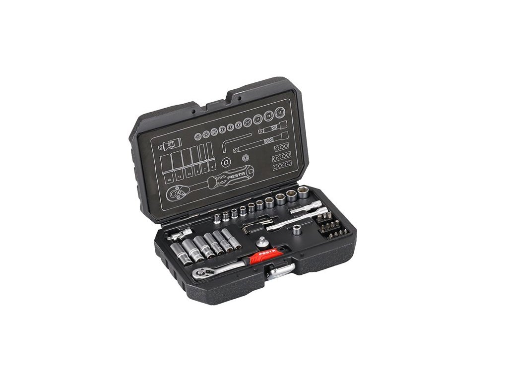Kvalitní gola sada je vhodná díky kvalitě použitých materiálů a zpracování v profesionální autodílně nebo servisu. 10 let záruka. Všechny části jsou vyrobeny z vysoce kvalitní chrom-vanadiové oceli. Niklová povrchová úprava. Hroty bitů jsou ze slitiny oceli S2. Ráčny mají jemné dělení 72 zubů, tělo ráčny z CrV oceli, zubový mechanismus z S2 oceli, ergonomicky tvarovanou rukojeť se zdravotně nezávadnou gumou. Nový design plastového kufru z primárního materiálu s kovovými uzávěry a panty víka.Doplňkové parametry