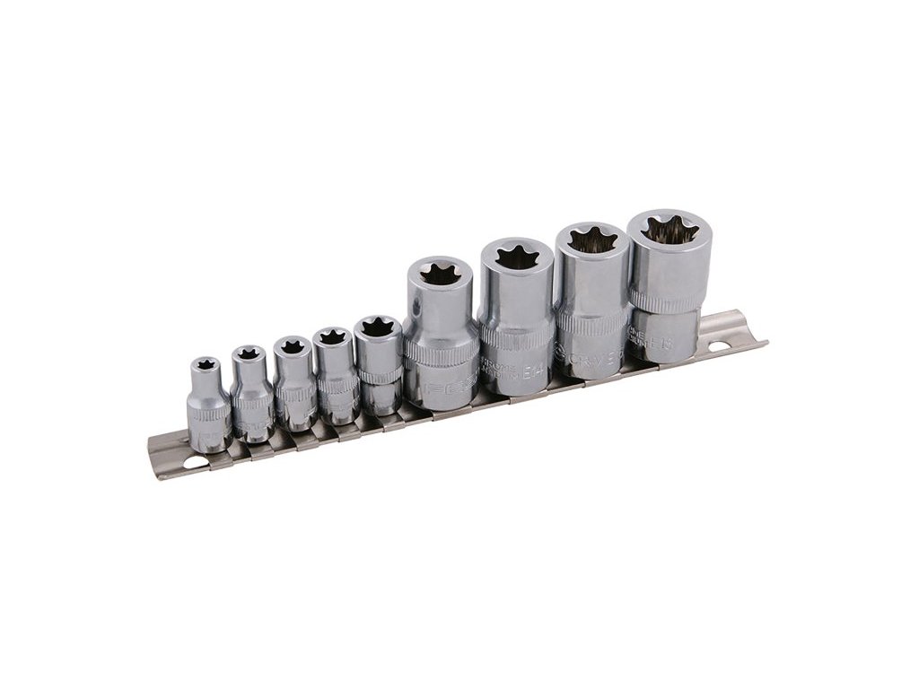 Sada nástrčných hlavic TORX. Všechny části jsou vyrobeny z chrom-vanadiové oceli kováním, dobře kombinovaná sada v přehledném kovové organizéru.Doplňkové parametry