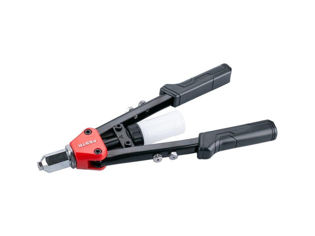 profesionální nýtovací kleště FESTA - Cr-Mo čelisti pro trhací nýty průměru 2,4 - 3,2 - 4,0 - 4,8 mm matriály nýtů hliník, ocel, nerez, měď robustní ocelový rám, plastové rukojeti, klíč pro snadnou výměnu koncovek jednotlivých průměrů bezpečná plastová sběrná nádobka pro zachycení odtržených trnů nýtů váha: 650g Instruktážní videoDoplňkové parametry