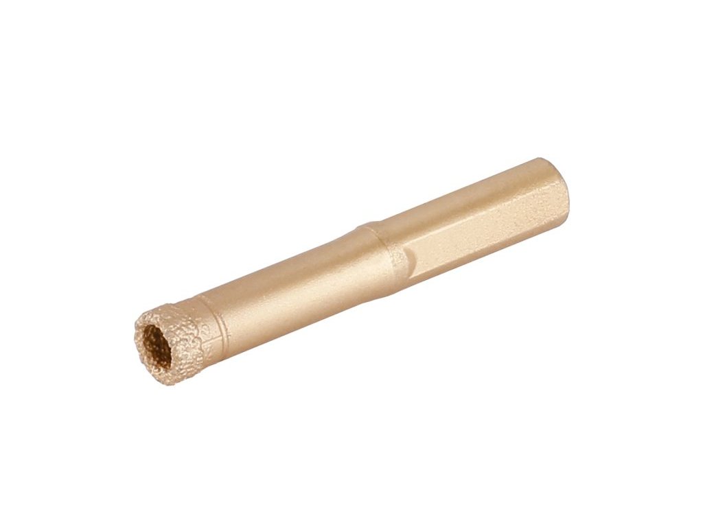 profesionální vrtací diamantová korunka se stopkou pro přesné a rychlé vrtání do kamene, dlažby, obkladů, žuly, mramoru a jiných extrémně tvrdých materiálů nejen ve stavebnictví výška vrstvy diamantu 10 mm, dlouhá životnost kotunku lze použít bez nutnosti použítí jakéhokoliv pomocného nástroje, u hladkých povrchů, doporučujeme požít vodič pro vrtáky a korunky 20379 doporučený pracovní postup - korunku upněte do vrtačky nebo AKU vrtačky doporučení - vrtačka by měla mít dostatečný výkon a vysoké otáčky, vrtat požadovaný otvor začněte pod úhlem 45 °, korunka a rychlost otáček vrtačky okamžitě zajistí uchycení v požadovaném místě, pomalu při rovnoměrně vytvořeném tlaku narovnejte směr vrtání do svislé polohy při vrtání doporučujeme korunky, zejména u tvrdých dlažeb chladitDoplňkové parametry