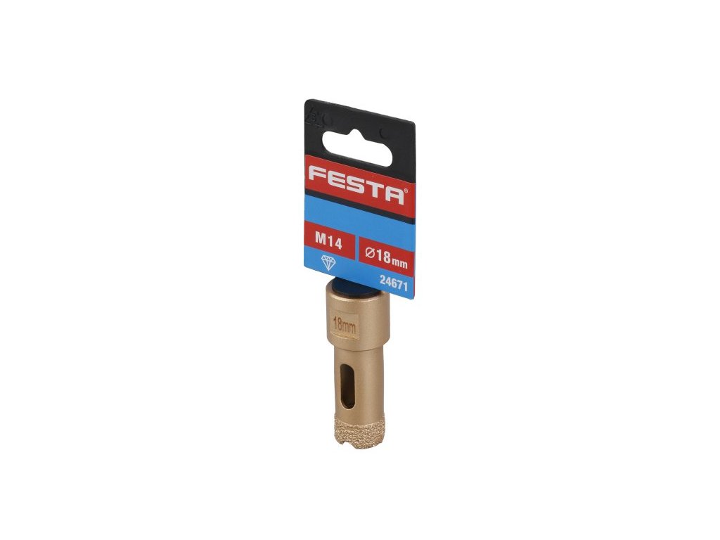 profesionální vykružovací diamantová korunka se závitem M14 - pro úhlové brusky pro "suché" přesné a rychlé vrtání do kamene, dlažby, obkladů, žuly, mramoru a jiných extrémně tvrdých materiálů nejen ve stavebnictví výška vrstvy diamantu 10 mm, dlouhá životnost bez nutnosti použít jakýkoli pomocný nástroj vykroužíte přesný otvor na požadovaném místě doporučený pracovní postup - našroubujte korunku přímo na závit hlavy úhlové brusky, pevně dotáhněte, vykružovat požadovaný otvor začněte pod úhlem 45 °, korunka a rychlost brusky okamžitě zajistí uchycení v požadovaném místě, pomalu při rovnoměrně vytvořeném tlaku narovnejte směr vykružování do svislé polohy, menší průměry 6 - 14 mm jsou u vrtání do tvrdých dlažeb. Mezi jednotlivými vrty ZCHLADIT - stačí ponořit do sklenice s vodou nebo nechat v otáčkách ochladit vzduchem! Instruktážní videoDoplňkové parametry