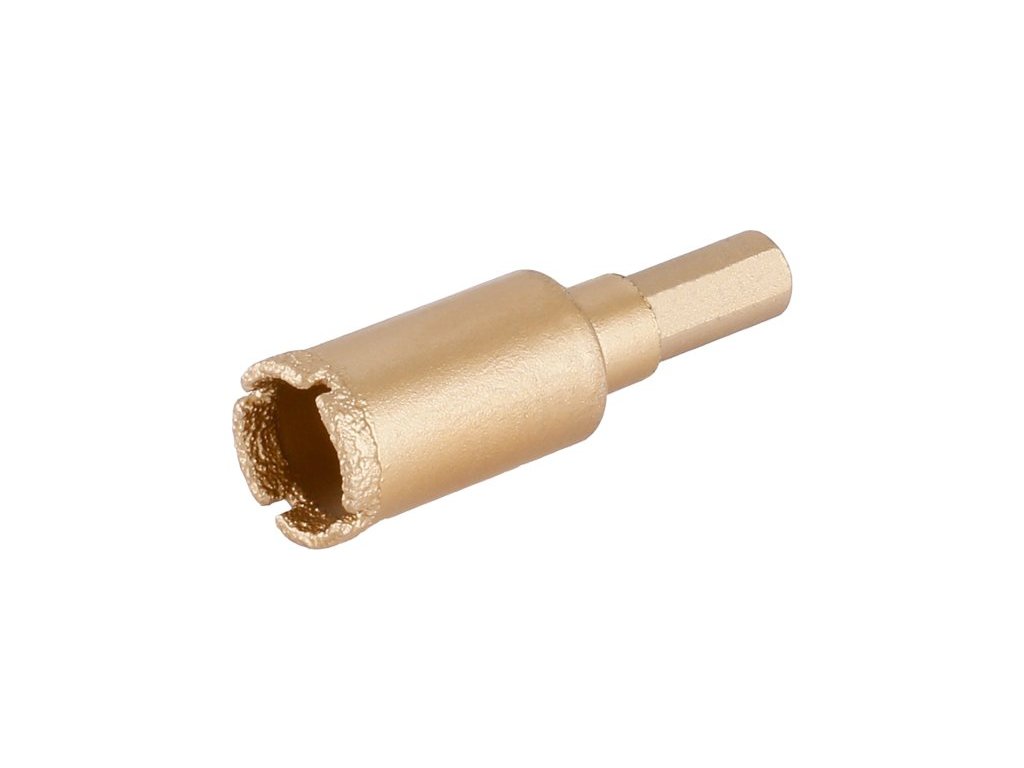 profesionální vrtací diamantová korunka se stopkou pro přesné a rychlé vrtání do kamene, dlažby, obkladů, žuly, mramoru a jiných extrémně tvrdých materiálů nejen ve stavebnictví výška vrstvy diamantu 10 mm, dlouhá životnost kotunku lze použít bez nutnosti použítí jakéhokoliv pomocného nástroje, u hladkých povrchů, doporučujeme požít vodič pro vrtáky a korunky 20379 doporučený pracovní postup - korunku upněte do vrtačky nebo AKU vrtačky doporučení - vrtačka by měla mít dostatečný výkon a vysoké otáčky, vrtat požadovaný otvor začněte pod úhlem 45 °, korunka a rychlost otáček vrtačky okamžitě zajistí uchycení v požadovaném místě, pomalu při rovnoměrně vytvořeném tlaku narovnejte směr vrtání do svislé polohyDoplňkové parametry