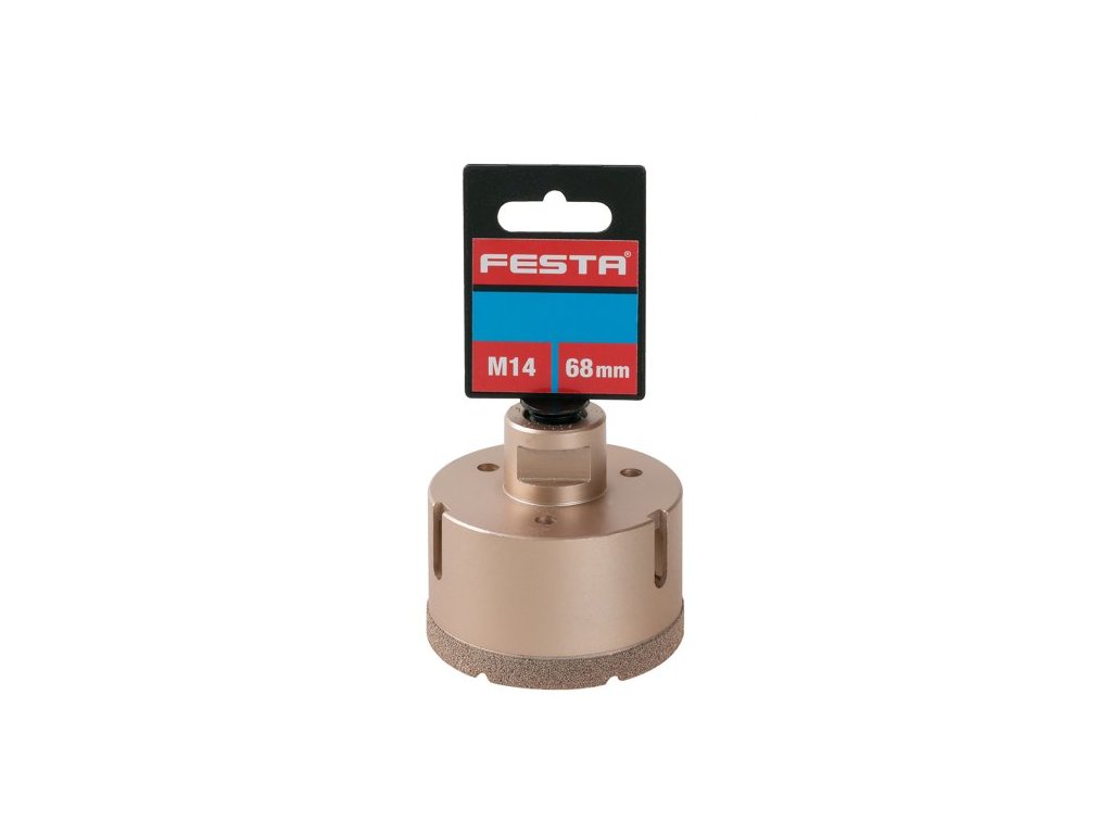profesionální vykružovací diamantová korunka se závitem M14 - pro úhlové brusky pro "suché" přesné a rychlé vrtání do kamene, dlažby, obkladů, žuly, mramoru a jiných extrémně tvrdých materiálů nejen ve stavebnictví výška vrstvy diamantu 10 mm, dlouhá životnost bez nutnosti použít jakýkoli pomocný nástroj vykroužíte přesný otvor na požadovaném místě doporučený pracovní postup - našroubujte korunku přímo na závit hlavy úhlové brusky, pevně dotáhněte, vykružovat požadovaný otvor začněte pod úhlem 45 °, korunka a rychlost brusky okamžitě zajistí uchycení v požadovaném místě, pomalu při rovnoměrně vytvořeném tlaku narovnejte směr vykružování do svislé polohy, menší průměry 6 - 14 cm je u vrtání do tvrdých dlažeb, mezi jednotlivými vrty, ZCHLADIT - stačí ponořit do sklenice s vodou nebo nechat v otáčkách ochladit vzduchem! Instruktážní videoDoplňkové parametry