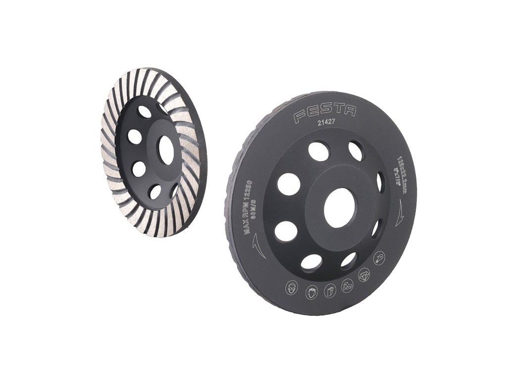 Brusný diamantový kotouč FESTA turbo, robustní nosný talíř je z pevné slitiny, speciální konstrukce uchycení diamantových segmentů k nosnému disku kotouče, vysoký obsah diamantového prachu v segmentech, použití : pro suché broušení mramoru, žuly, cihel, zdiva, přírodního i umělého kamene, obkladů, dlažeb..., lamelové provedení je vhodné pro jemné dobrušování, rozměry : uvedeny v názvu výrobku, balení : papírový box s eurootvorem. Instruktážní videoDoplňkové parametry