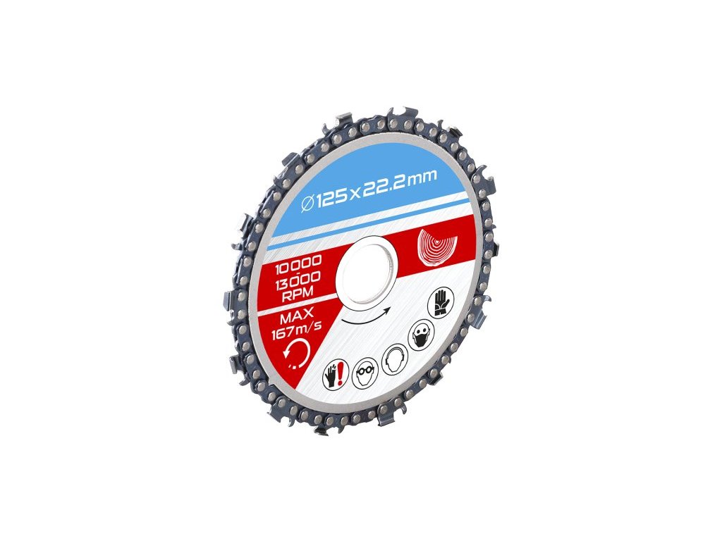 řezný kotouč na dřevo na úhlovou brusku Dodržujte bezpečnost při práci a věnujte pozornost údajům uvedeným na kotouči! KOTOUČ JE PRIMÁRNĚ URČENÝ K OPRACOVÁNÍ SUCHÉHO DŘEVA - ZAHLUBOVÁNÍ, OBRUŠOVÁNÍ, NEJLÉPE PEVNĚ UCHYCENÉHO VE SVĚRÁKU, SVĚRKAMI APOD! KOTOUČ NENÍ URČENÝ KE KÁCENÍ A ŘEZÁNÍ STROMŮ, KEŘŮ, VĚTVÍ APOD.Doplňkové parametry