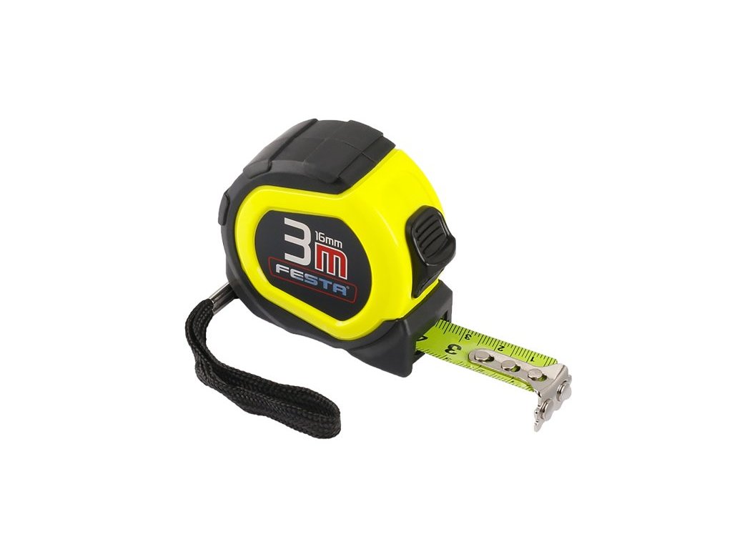 svinovací metr FESTA magnetic II. třída přesnosti, CE - certifikát, metr vhodný ke kalibraci kalená páska, fluorescenční vrstva - dobře čitelná stupnice i v horších světelných podmínkách, magnetický háček pouzdro metru z ABS plastu s gumovou ochranou - vyšší odolnost proti poškození při nárazech, lepší manipulace a úchop metru poutko, klip na opasekDoplňkové parametry