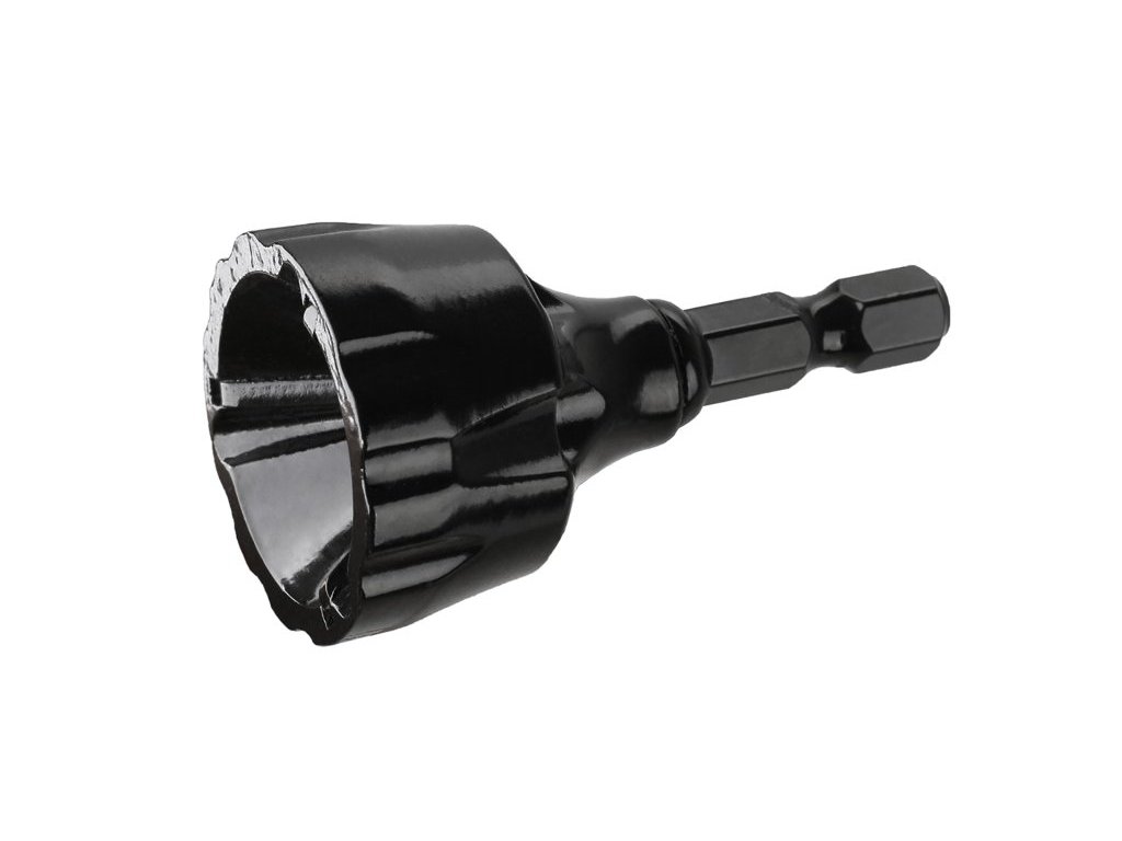 odhrotovač na "sražení" hran šroubů, závitových tyčí, hřídelí, kulatiny apod. v průměrech 3 - 19 mm vhodný pro materiály - ocel, nerezová ocel, barevné kovy, plasty, dřevo ojehlovací plátky z vysokotvrdostní oceli otáčky 0 - 500 ot./min. koncovka šestihran 1/4" pro uchycení v akuvrtačce nebo akušroubováku, lze použít i ručku se zakončením 1/4" Instruktážní videoDoplňkové parametry