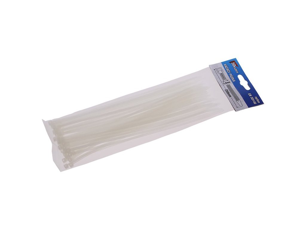 páska nylonová vázací - stahovací pásky splňují normu EN 50146 (Kabelové vázací spony pro elektrické instalace) minimální pracovní teplota 0°C, teplotní rozsah -40 až 85 °C, UV stabilní pevnost v tahu 18 kg, průměr stažení od 5 až do 65 mmDoplňkové parametry