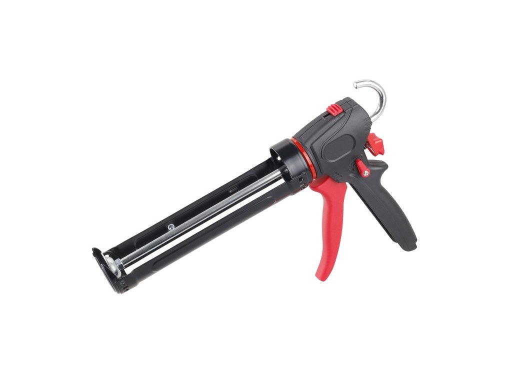 vytlačovací pistole na kartuše 310 ml masivní posuvný mechanismus pro husté a tuhé tmely, lepidla nebo chemické kotvy možnost nastavení dvou úrovní zpětného odskoku nebo jeho úplné vypnutí nastavení převodu síly a tím i množství vytlačeného tmelu 9:1 nebo 18:1 na jedno zmáčknutíDoplňkové parametry