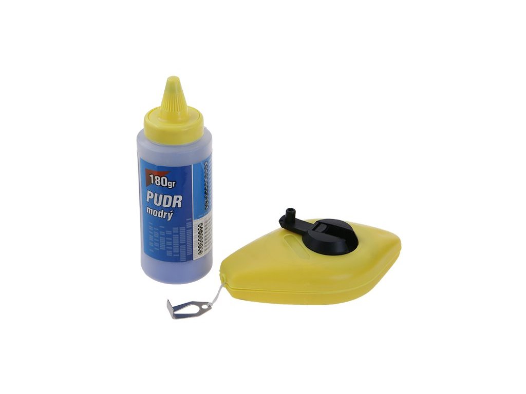 Sada navíječ a pudr, délka provazu - 30 m, hmotnost pudru 180 g, použití : označení přechodů - linií ve stavebniství ,malířství, SDK,..., po naplnění přiloženým pudrem ( modrý - lze doobjednat : modrý 37096, světle-modrý 37094, červený 37097, světle-červený 37095, černý 37098), postup : přiloženým pudrem naplníme navíječ, protřepáním a opakovaným vysunutím a opětovným navinutím provazku jej probarvíme, po-té ve dvou napneme provázek v potřebném místě vyznačení linie a lehve brnkneme - tím se pudr zachycený na provázku nanese v tenké vrtstvě na značený materiál, pak provázek navineme, popř. opět doplníme pudrem, balení: blistr s eurootvorem.Doplňkové parametry