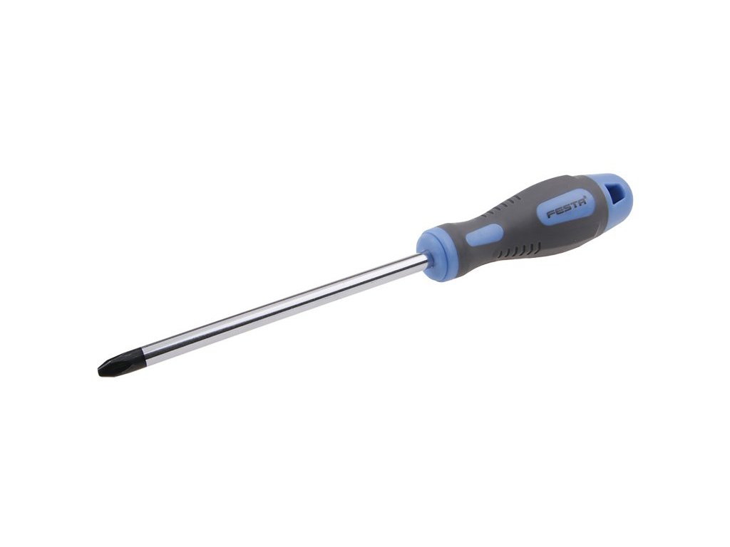Profesionální šroubovák FESTA má kovový dřík vyroben z velmi kvalitní molybdenové oceli S2, kalený hrot je magnetický, povrchově chráněný tvrdochromem, kombinace polypropylenu a pryže na ergonomicky tvarované rukojeti zaručuje výborné antiskluzové vlastnosti a dobrou odolnost vůči mazadlům a chemikáliím.Doplňkové parametry
