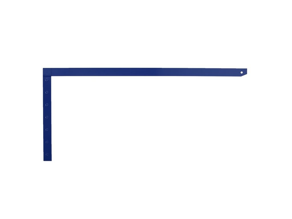 Zednický úhelník z kalené pružinové oceli, zesílené opěrné rameno, prášková barva.Doplňkové parametry