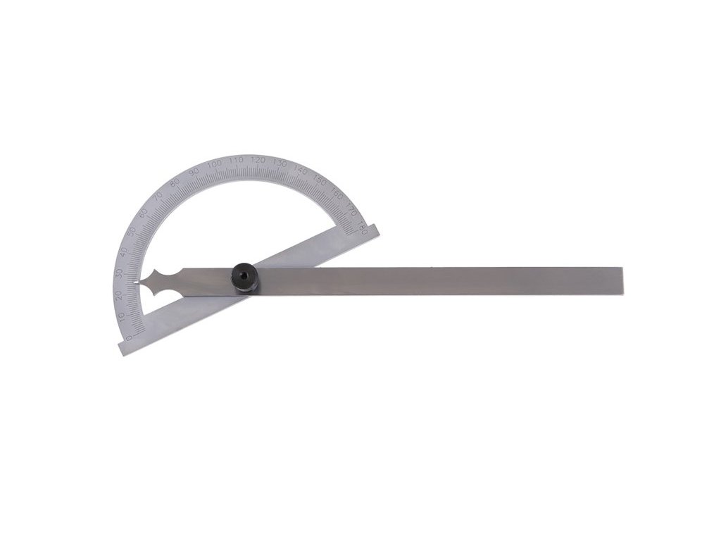 Úhloměr s otočným ramenem, délka základny úhelníku 150mm, délka otočného ramene 200mm, 0 - 180°, možnost aretace naměřeného úhlu pro přenesení. Nerezová ocel, koženkové pouzdro.Doplňkové parametry