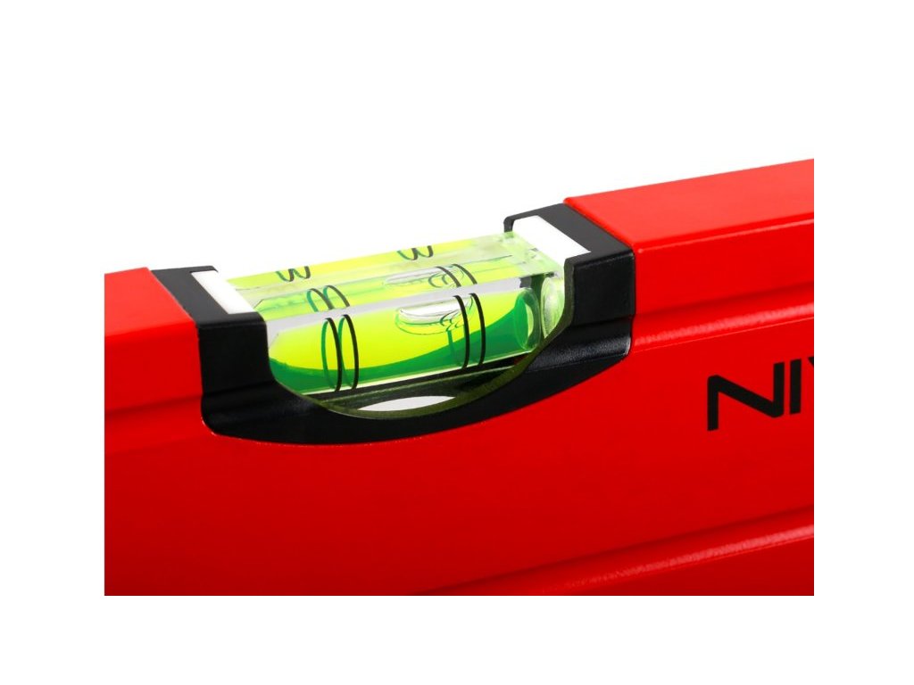 nová vodováha LIBELA se dvěma libelami přesnost zvýšena na 0,5 mm / 1 m nový hliníkový profil - síla stěny základny 2,4 mm libely zalité v nárazuvzdorném akrylátu libela s fluorescenční kapalinou - lepší viditelnost v horších světelných podmínkách vnější rysky na libele pro sklon 2 % gumové koncovky - ochrana při pádechDoplňkové parametry